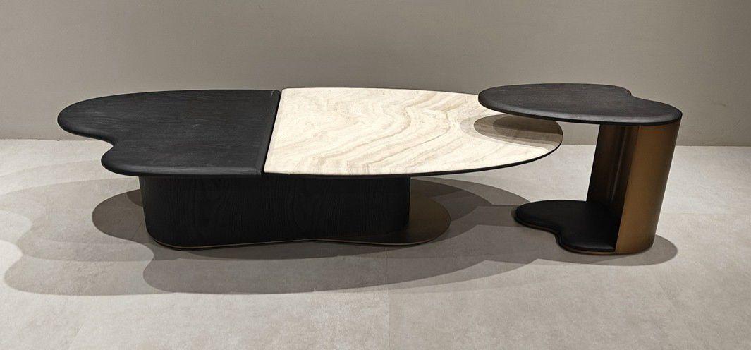 This imported centre table features a modern asymmetrical design that adds a bold statement to luxury living room interiors. The combination of a rich dark base and light-toned top creates a striking contrast with contemporary elegance.
